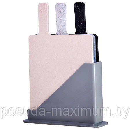 Размер: 7,5 х 24 х 33 см.Набор разделочных досок MAYER&BOCH состоит из трех разноцветных досок, размещенных в оригинальной подставке, что делает набор не только многофункциональным, но и очень удобным для хранения на кухне. Цветные разделочные доски выполнены из прочного пищевого пластика и могут использоваться для нарезки сырого мяса и рыбы, овощей, фруктов, вареных и копченых продуктов, хлеба и т.д. Небольшой выступающий "ярлычок", имеющийся на каждой из досок, позволяет с легкостью извлекать их из подставки, а также служит удобной ручкой, за которую можно придерживать доску в процессе мытья. Каждый ярлычок отмечен рисунком продуктов, для которых предназначена доска: для рыбы, для мяса, для овощей и фруктов. Набор разделочных досок станет незаменимым и полезным аксессуаром на вашей кухне, который к тому же и стильно дополнит кухонный интерьер. Подходит для мытья в посудомоечной машине.
