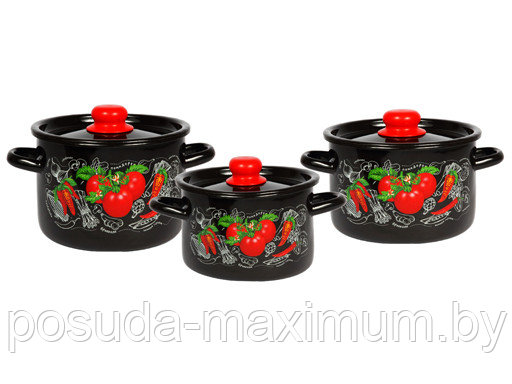 Набор кастрюль эмалированный 3шт Помидорки 1с14